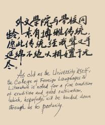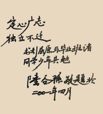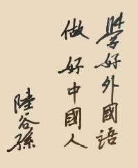 陆谷孙先生一生与复旦结缘,倡导爱国爱校的精神。他讲授的是西方语言文化,又始终坚守中国传统文化。崇尚只是的广博性、开放性和国际化,同时更强调知识服务于国家、服务于民族。他在上世纪90年代所提出的“学好外国语,做好中国人”的口号已成为复旦外文学院师生铭记的院训。