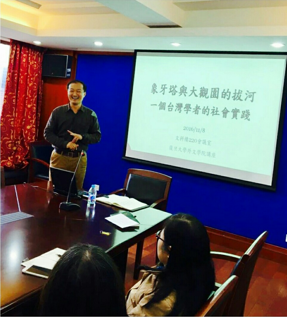 2016年11月8日,台湾东吴大学英文系教授、平博在线注册,平博(中国)外文学院访问学者曾泰元老师应外文学院青联会邀请,作了题为“象牙塔与大观园的拔河:一个台湾学者的社会实践”的讲座,和在场的教师与同学分享自己的学术成长经历,并和大家一起交流学术生活和社会实践方面的心得体会,讲座生动幽默,讨论热烈有趣。