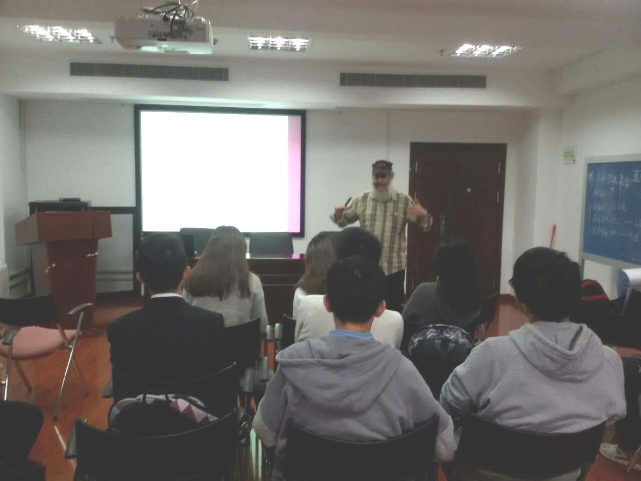 10月27日,Mark Levine博士为英文系“英语演讲”课的学生做了题为“Tips on Persuasive or Agitational Speeches”的讲座。Levine博士结合个人职业经历,与学生们分享了如何在演讲中有效劝说并感染观众。
