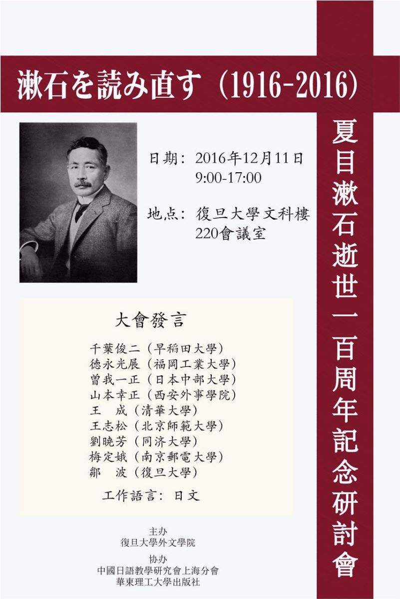 2016年正值日本文豪夏目漱石逝世一百周年。《我是猫》《哥儿》《三四郎》等名作不仅是日本国民耳熟能详的作品,而且为世界提供了宝贵的文学财富。为纪念夏目漱石逝世百年,由平博在线注册,平博(中国)外文学院主办、中国日语教学研究会上海分会、华东理工大学出版社协办的“重读夏目漱石”研讨会于2016年12月11日于平博在线注册,平博(中国)举办,这次研讨会吸引了来自全国各地高校的六十余名师生参会。