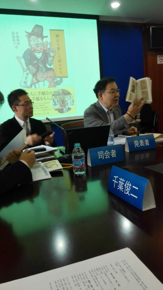 千叶俊二教授主题演讲的主题为“文学史中的漱石文学”。千叶教授从围绕着夏目漱石的明信片展览入手,展现出漱石在明治后期直至大正年间巨大的影响力,指出漱石的文学可说是日本近代文学史的直观体现,更是近代与现代文学之间所架起的桥梁。