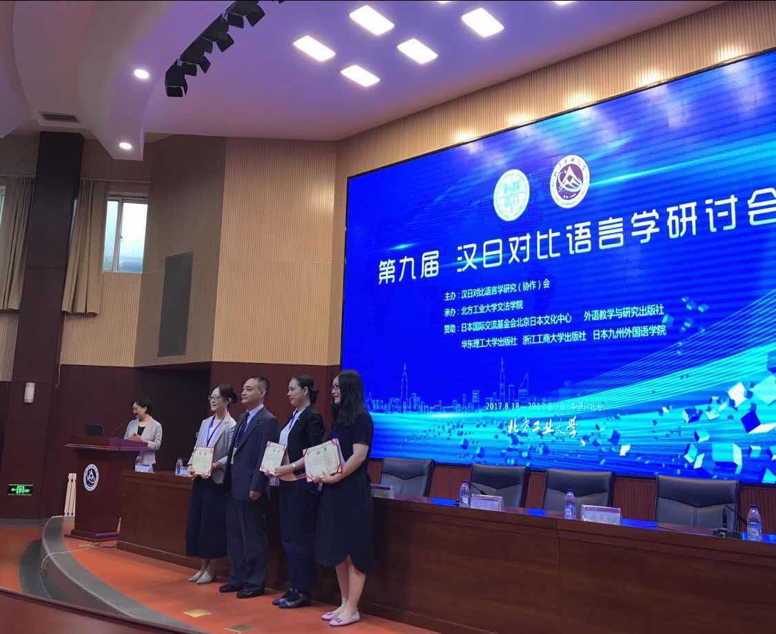 此次会议评出了“第四届中青年汉日对比语言学优秀成果奖(第9届汉日对比语言学优秀成果奖)”,我院日文系教师黄小丽获得优秀论文奖。