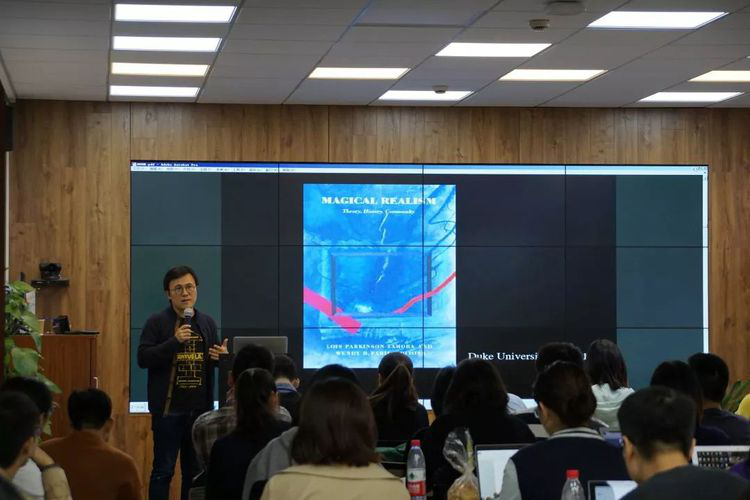 第四场讲座主题为“谁之魔幻?谁之现实?——从‘黄蝴蝶’到‘哥斯拉’”,主讲人为北京大学外国语学院西葡语系范晔博士。范晔老师以“当我们谈论魔幻现实主义时,我们在谈论什么?”切入,通过对西班牙画作的介绍引出魔幻现实主义的概念实际是从艺术批评界延伸到文学批评界的。接着,范老师勾勒了“魔幻现实主义”这一名词在文学语境中的源流变迁。魔幻现实主义的特征是将现实作为魔幻事物加以描述。