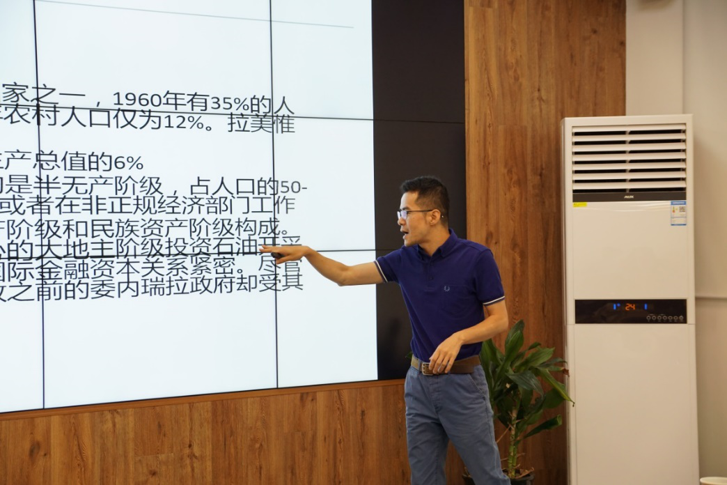 第三场讲座的主题为“全球南方视野下的拉美传播”,主讲人为中国传媒大学拉美传播研究中心主任、新闻学院张志华副教授。张老师以传播学视角展开,讲解了南方国家的特点,以及“全球南方”的概念界定,并以美国底特律现状为例,对“南、北”的概念进行了具体区分。张老师还以委内瑞拉政变为例,详细分析了委内瑞拉的媒体结构,以及政治倾向不同的媒体在政变中所扮演的截然不同的角色。