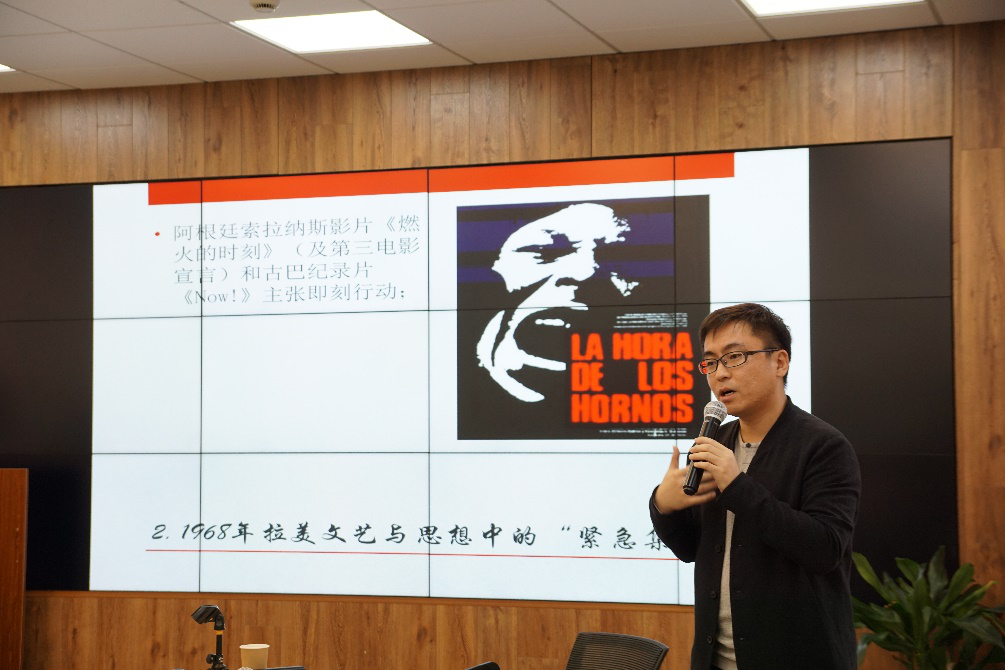 第六场讲座主题为“1968年拉丁美洲文艺、第三世界与知识分子问题”,主讲人为中国社会科学院外国文学研究所魏然博士。魏然博士从社会史和思想史的视角展开,从“六十年代”这一不平凡的时间概念出发,进入当时处于全球剧变背景下的拉美,为我们解读在1968年前后这一重要转折点拉美的文化与经济、政治和世界局势的联系。