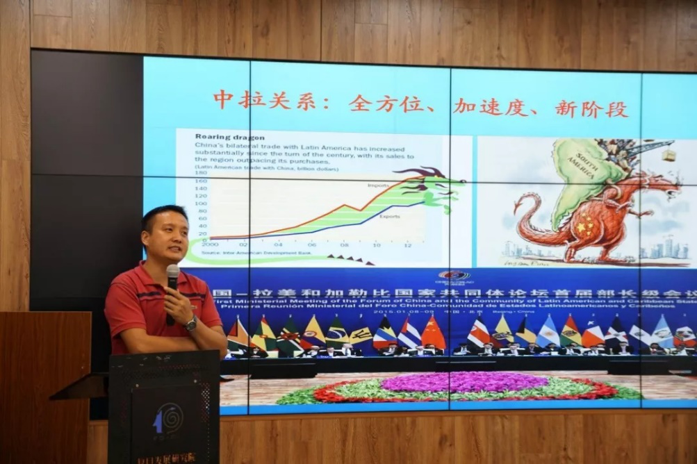 首场讲座的主题为“迈向新时代的中拉关系:现状与展望”,主讲人为中国社会科学院拉丁美洲研究所社会文化研究室主任郭存海。郭老师详细讲解了中拉关系从革命与战争到改革与发展的历史进程,并用详实的数据为我们剖析了中拉贸易在过去几年的投资规模、产业分布、拉美对华出口结构等情况。郭老师指出,在“一带一路”倡议提出五周年之际,我们仍将持有十足的劲头,与拉美各国一道,深化各领域交流合作,全力推动中国梦与拉美梦的美好同行。