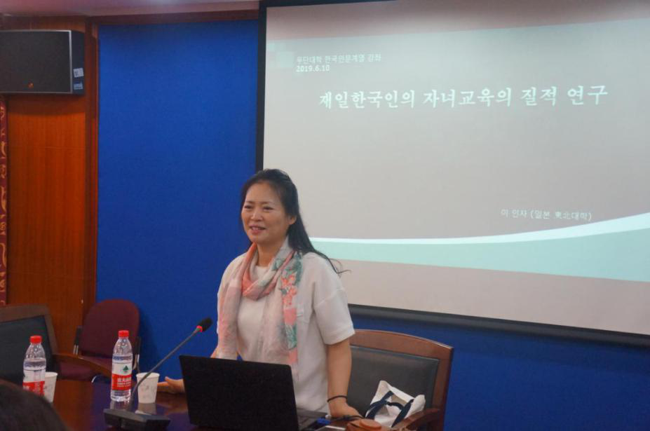 讲座由韩文系郭一诚老师主持,主讲老师李仁子教授来自日本东北大学,长期跟踪研究旅日朝鲜人和韩国人的移民社会问题,著有《全球化时代在日韩国移民子女的教育问题》、《在日韩国人的墓葬和丧葬仪式》等专著。