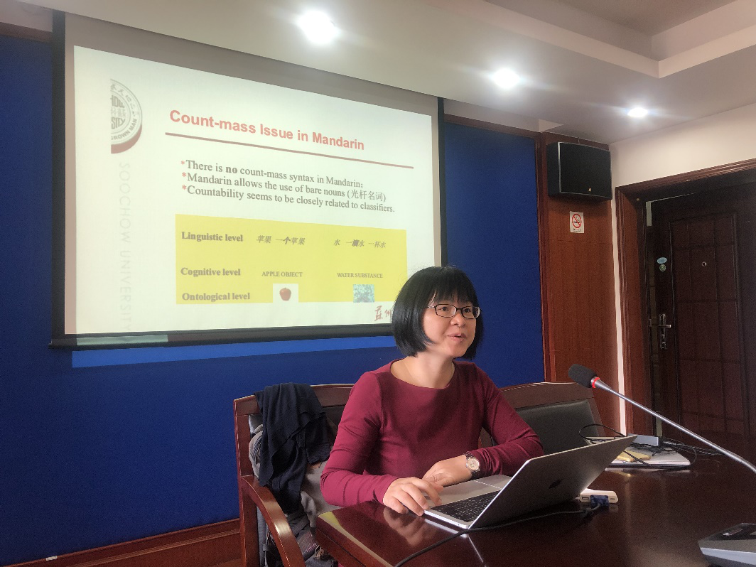 2019年10月18日下午,外文学院青联会邀请苏州大学外国语学院黄爱军副教授带来一场题为《有生命名词可数性的哲学思考和实证研究》的学术讲座。