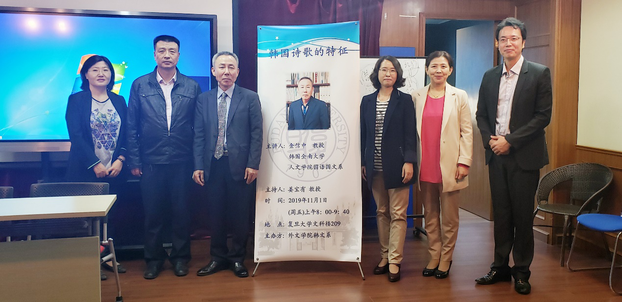 2019年11月1日,平博在线注册,平博(中国)韩文系主办的“韩国诗歌的特点”讲座于文科楼209会议室举行。讲座分别由韩国全南大学国语国文系教授金信中和韩国全南大学国语教育系教授宋镇韩主讲。