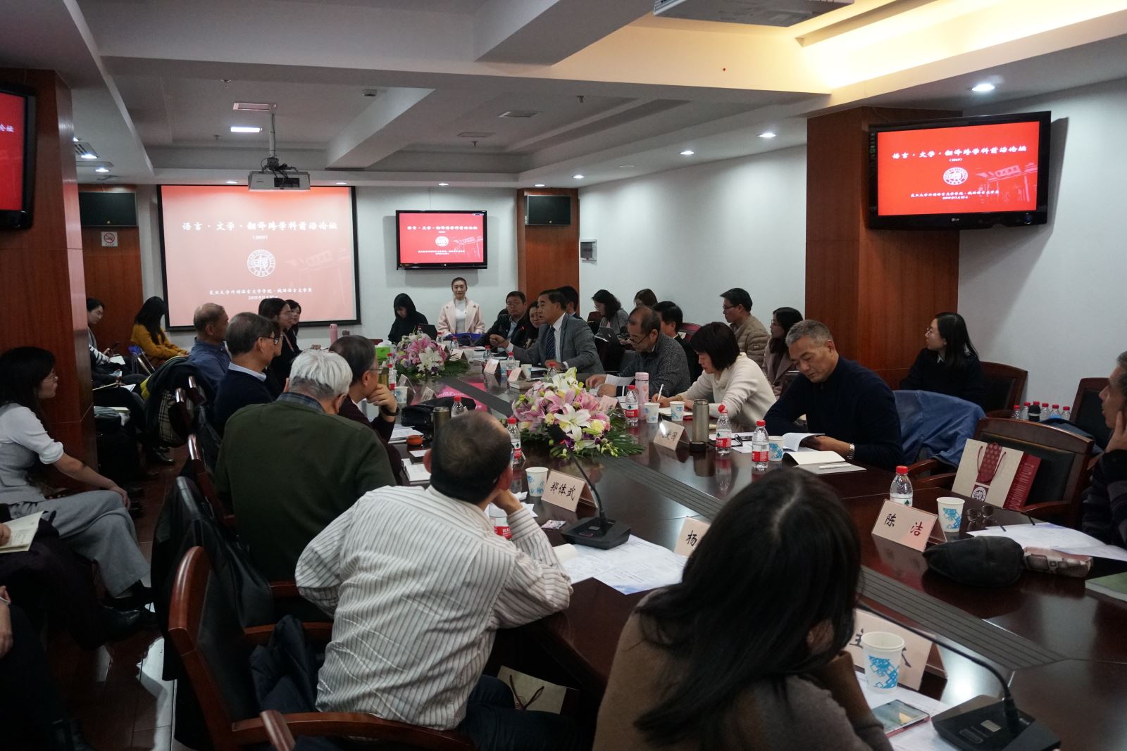 第五场报告由平博在线注册,平博(中国)中文系教授、博士生导师申小龙呈现。其从中文特有的四字格入手,探讨了中文句法建构的骈散二重性。天津外国语大学教授、博士生导师王铭玉和上海外国语大学教授、博士生导师许宏评议时均表示外语学界与汉语学界的交流收获颇丰。