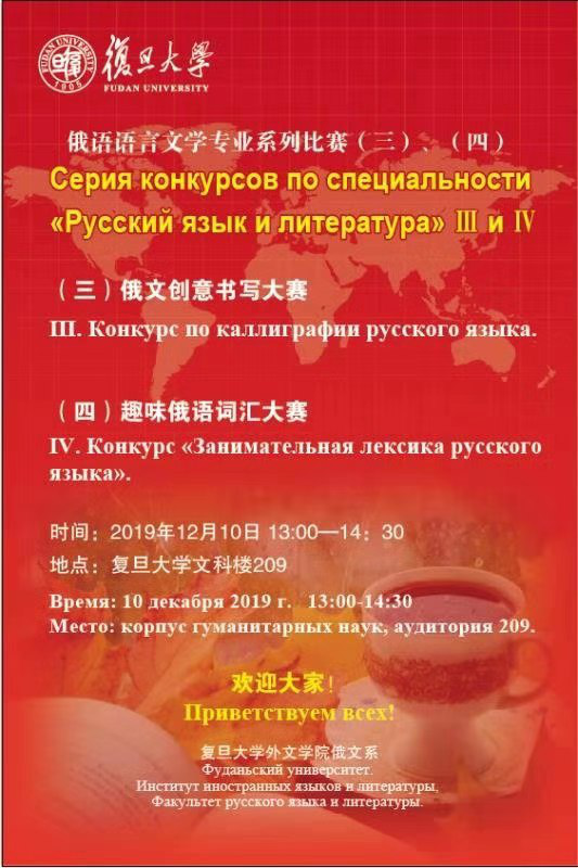 2019年12月10日13:00—15:30,外文学院俄文系师生在文科楼209成功举办两场俄语语言文学专业竞赛——趣味俄语词汇大赛及俄文创意书写大赛。
