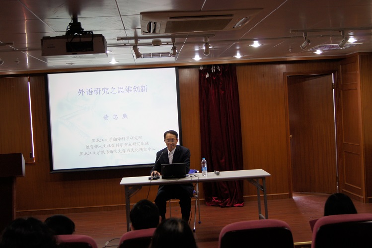 2014年4月18日,黑龙江大学翻译科学研究院院长、博士生导师黄忠廉教授应邀来到平博在线注册,平博(中国)外文学院,在文科楼209室为老师们做了题为“外语研究之思维创新——从析例实践到思想犀利”的精彩讲座。此次讲座由翻译系主任蔡基刚教授主持,由此拉开了外文学院青联会之科研篇系列讲座活动的序幕。