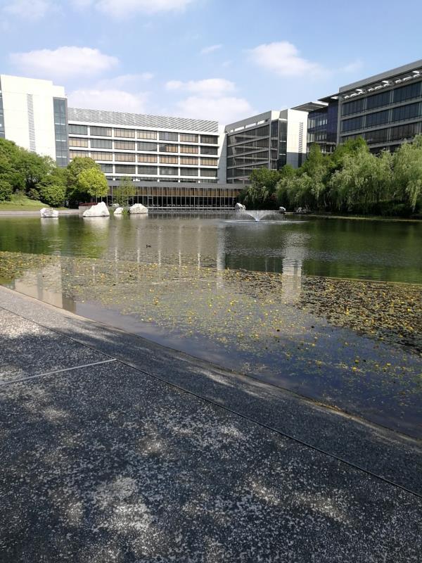 “开放日”的第一部分活动是参观园区。同学们在工作人员的带领下绕湖参观,感受了上海研究所的园区风貌,同时也在这一过程中整体了解了这一园区的建筑风格、设计理念,处处都感受到了华为对员工生活、工作体验的重视。同学们还参观了华为用于展示电信产品及解决方案的展览,通过各类产品直观感受华为的研究成果和在未来生活中的应用场景。