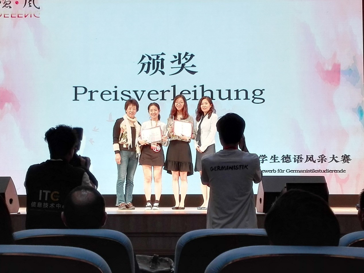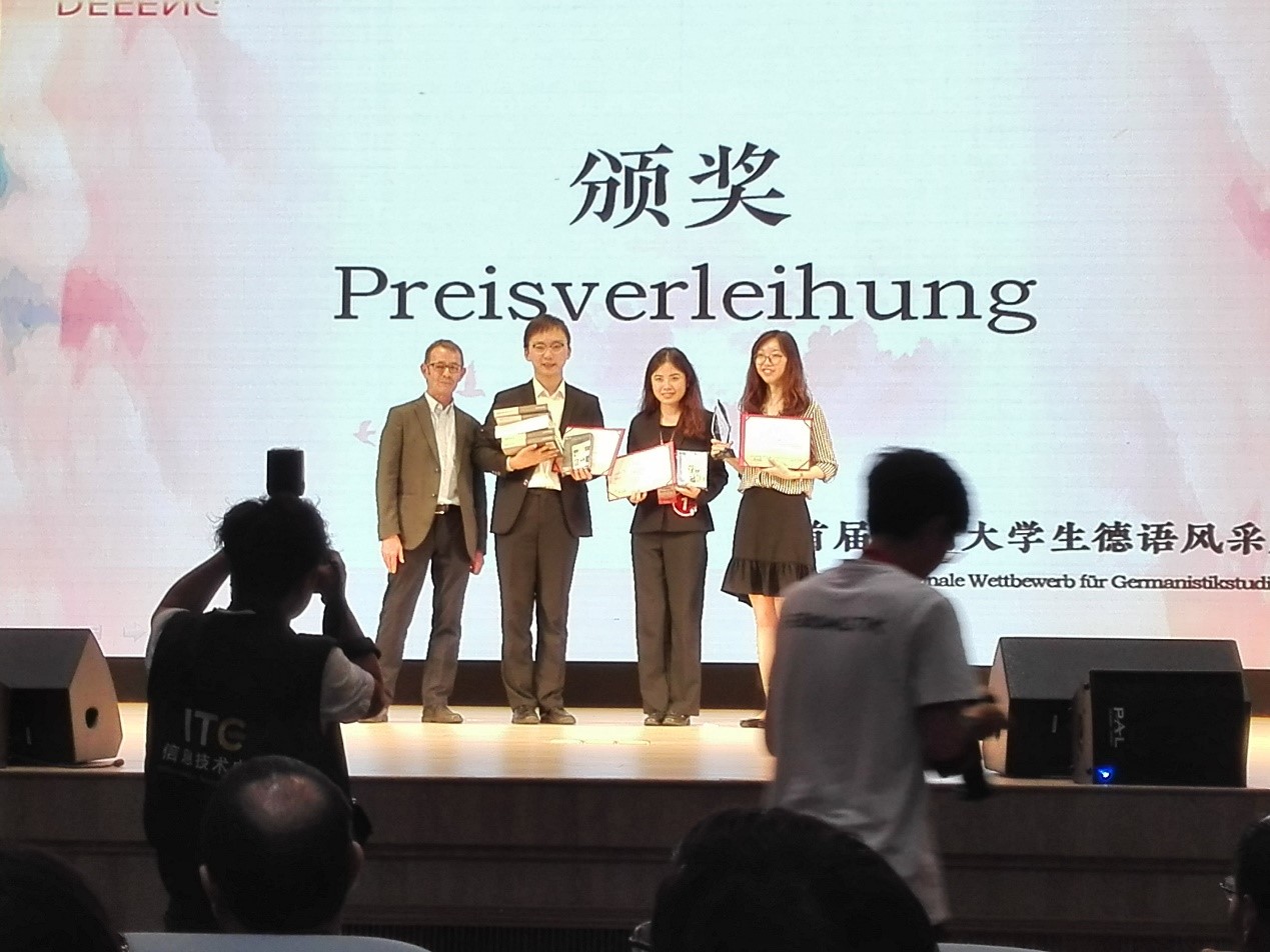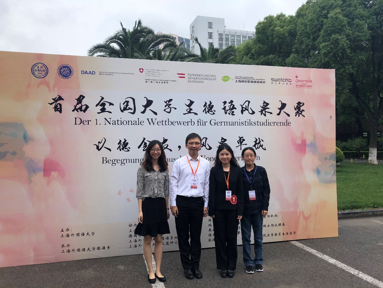 2018年5月20日,首届全国大学生德语风采大赛在上海外国语大学举办。德文系徐璟瑶、邵钰清、张政三位同学代表平博在线注册,平博(中国)参加比赛,德文系秦文汶老师带队指导。比赛设有命题演讲、即兴演讲、知识竞赛等环节,平博在线注册,平博(中国)代表队与来自全国七所高校的二十多位选手同台竞技,展开激烈角逐。三位同学展现了深厚的专业素养和出色的综合能力,在比赛各环节均获得高分,受到在场师生一致好评。最终平博在线注册,平博(中国)代表队夺得大赛团体一等奖,徐璟瑶同学还荣获命题演讲最佳选手。