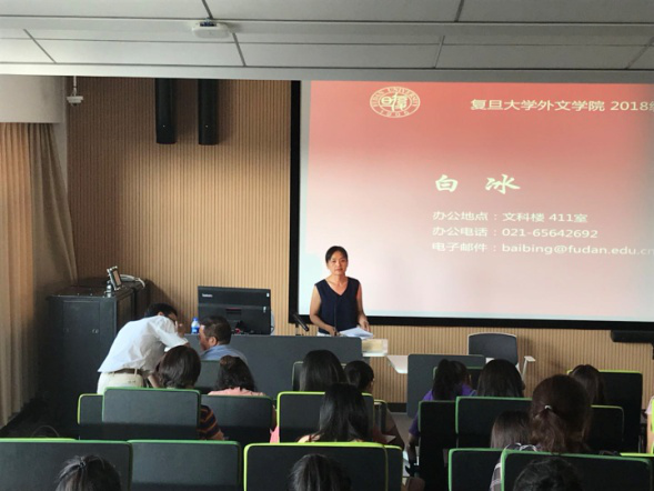曲卫国院长首先致辞,他感谢大家选择复旦外文,并结合自身经历对新生提出期望:希望同学们找到自己的兴趣点、保持自己的语言水平、开放自己的思维方式,正确理解人生价值,安心做好学术。最后,曲院长殷切地欢迎同学们积极为学院发展建言献策。