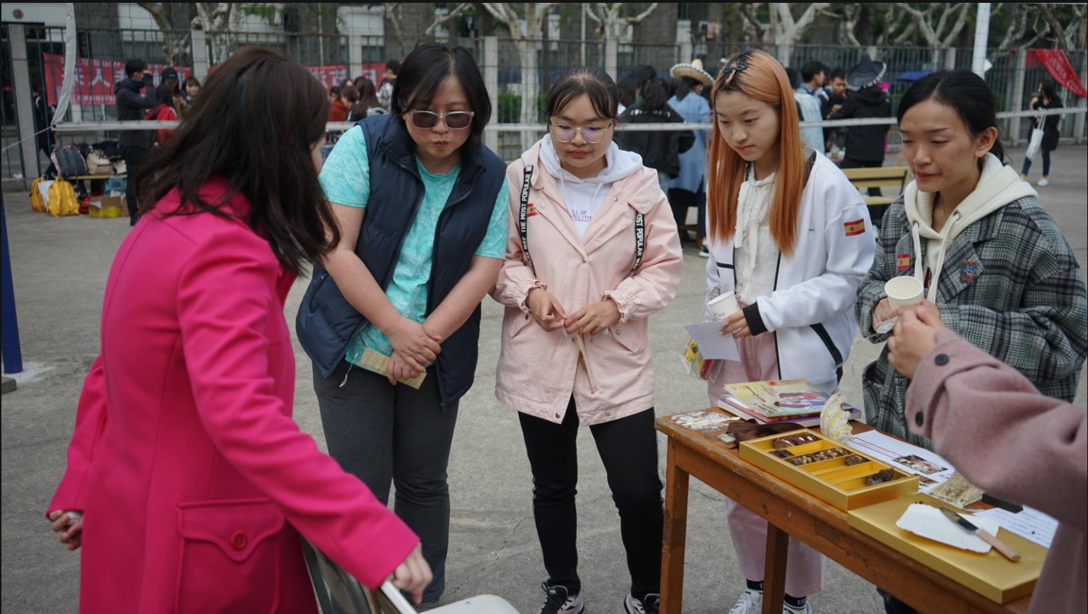 游园会上,各语种摊位各放异彩,让参与者在文化体验中相互交流,了解外国文化,提高外语水平。