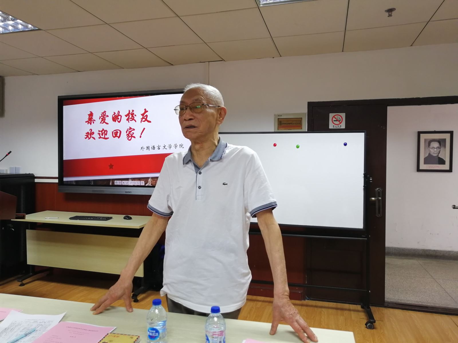 外文学院原党委书记徐龙顺校友,回顾了自己入学和工作时的往事。他表示,学院从曾经的语种单一、规模小发展为现在语种丰富、规模大,这是值得欣喜的。他祝愿学院蒸蒸日上,未来更好。