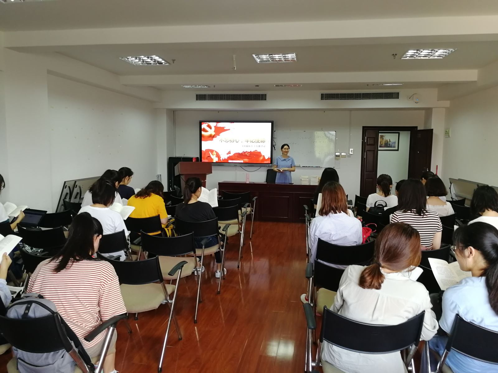 日韩教工党支部召开“不忘初心,牢记使命”专题组织生活会,传达学院“不忘初心、牢记使命”主题教育实施方案和工作安排,支部党员共同开展学习。