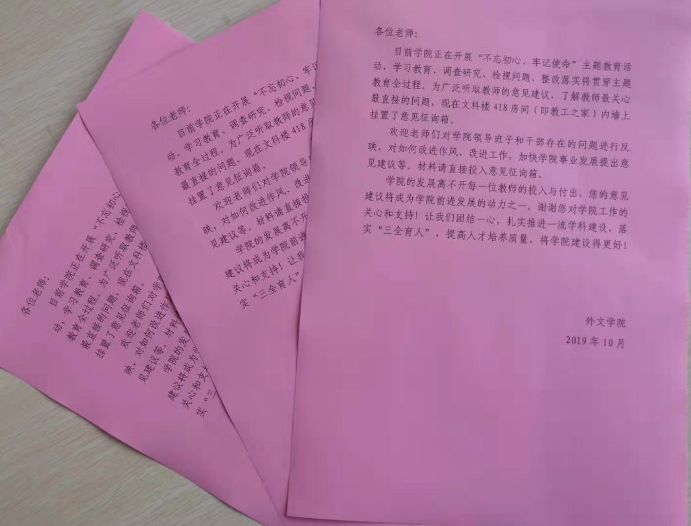按照学校党委的部署和要求,外文学院分党委制定了《外文学院实施方案》和《外文学院“不忘初心、牢记使命”主题教育工作安排表》,召开部署动员大会,按照“守初心、担使命,找差距、抓落实”的总要求,结合学院实际,开展一系列学习教育活动。