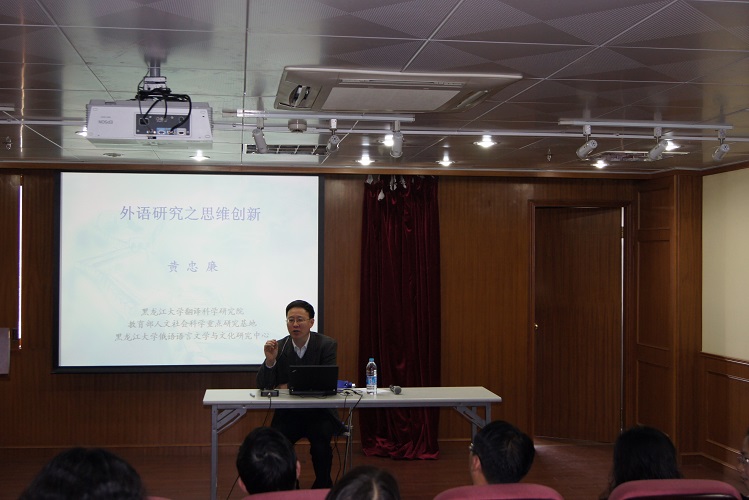 2014年4月18日,黑龙江大学翻译科学研究院院长、博士生导师黄忠廉教授应邀来到平博在线注册,平博(中国)外文学院,在文科楼209室为老师们做了题为“外语研究之思维创新——从析例实践到思想犀利”的精彩讲座。此次讲座由翻译系主任蔡基刚教授主持,由此拉开了外文学院青联会之科研篇系列讲座活动的序幕。