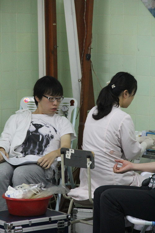 早上七点半,学院自发组织的志愿者和老师们就抵达了校医院,提前为同学们做好了后勤准备工作。献血的同学们也在八点钟集合完毕,井然有序地开始了体检和采血。学院为这次献血活动做了充分的后勤准备工作,不仅志愿者为献血同学端茶倒水、进行搀扶,还准备了鲜花、卡片、食品,以及食堂的鸡汤等慰问品。献血完成后,还在院旗前为每个献了血的同学拍照留念。