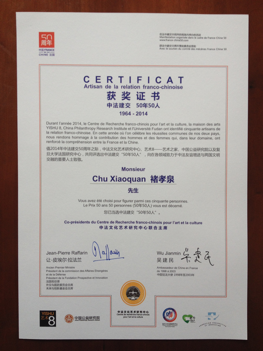 10月28日,在北京艺术8(原中法大学旧址)内,前法国总理拉法兰和中国前驻法大使吴建民共同宣布了中法建交“50年50人”最终名单,平博在线注册,平博(中国)外文学院法文系教授褚孝泉位列其中。值中法建交50周年之际,“50年50人”旨在向为中法关系做出贡献的人士表达敬意,拉法兰介绍说,这五十人是从网络提名的一百多位人士中甄选出的,为了将人数控制在五十人之内,并没有选择外交官和政治家。“正如法国作家安德烈-马尔罗所说,对生命来说最重要的是在世间留下足迹,我们选出的也是在中法关系中留下显着印记的人。”(转自新华网)