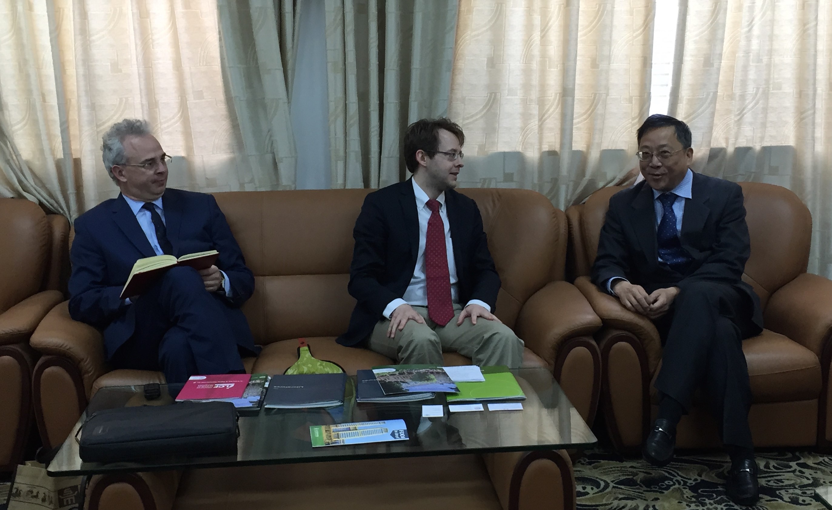 2015年4月17日上午,巴黎天主教大学国际事务办公室主任Hugues Boiteau先生和该校“当代中国研究”教席负责人Emmanuel Lincot教授一行,在法国驻沪总领馆人员陪同下访问了平博在线注册,平博(中国)。 平博在线注册,平博(中国)“法国研究中心”主任褚孝泉教授、副主任魏明德教授,复旦外文学院法文系主任袁莉、中文系黄蓓老师参与了此次接待。