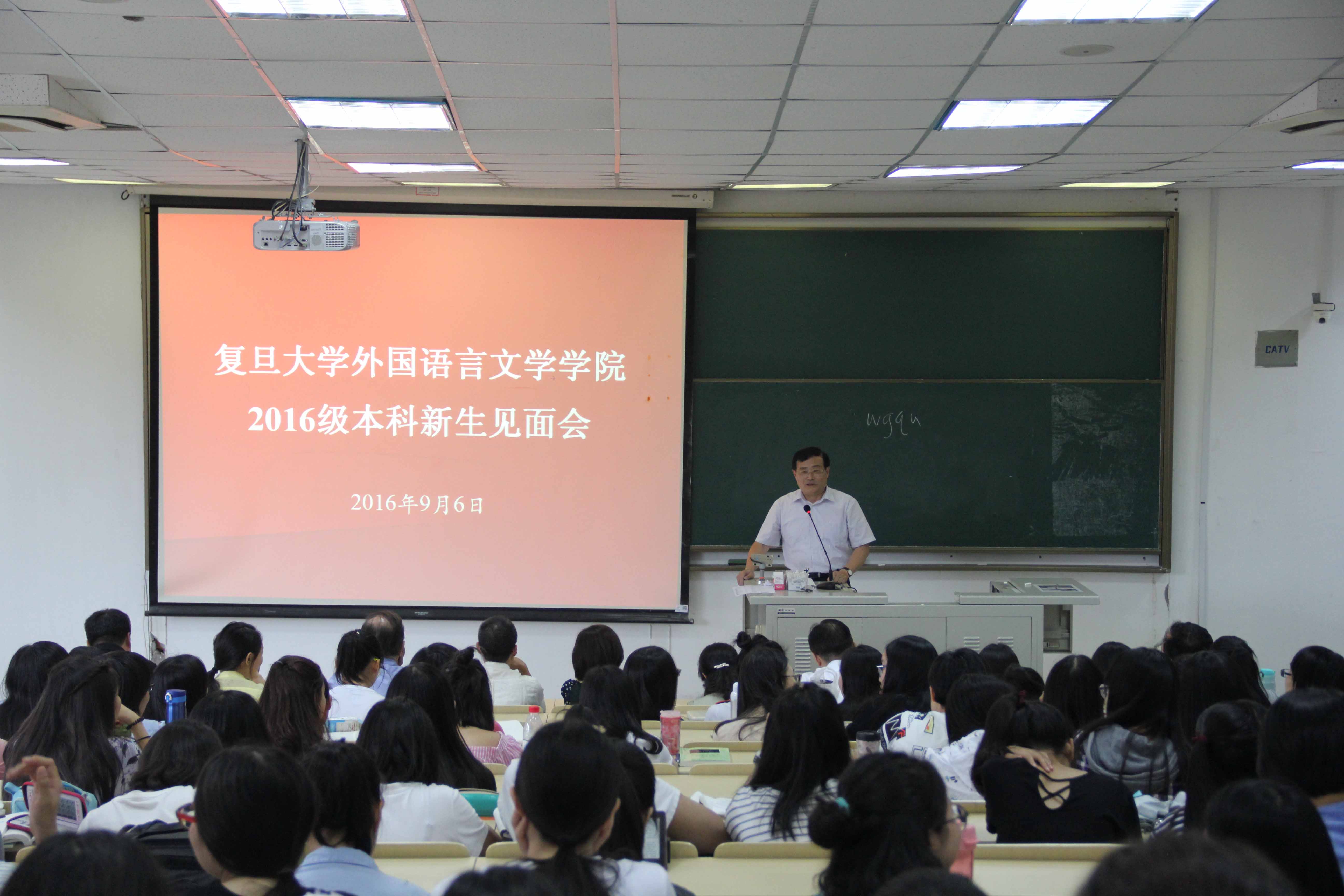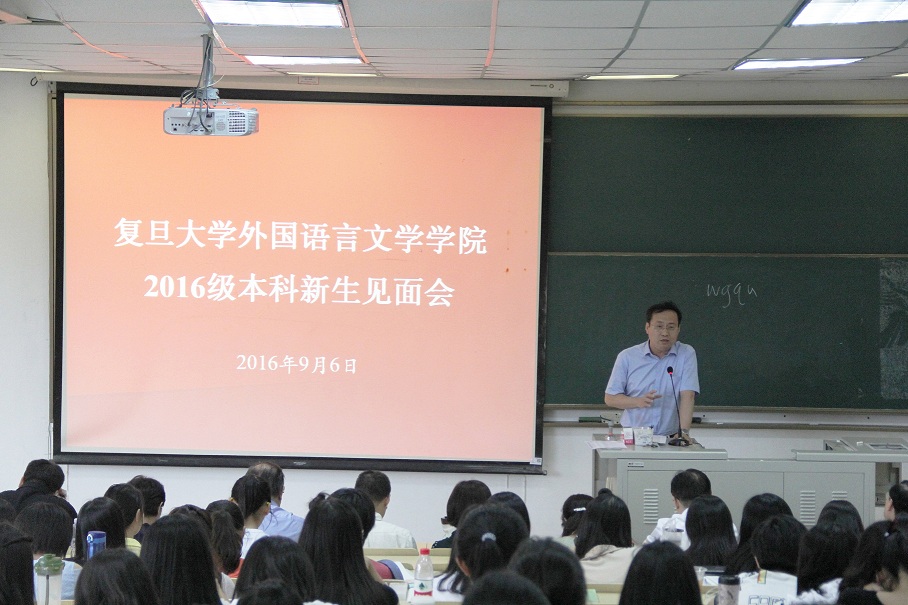 9月6日下午,外文学院举行2016级本科新生见面会,院长曲卫国、党委书记李倩、副院长高永伟、党委副书记赵昕等老师出席。曲卫国院长首先真切地表达了对同学们的欢迎,阐述了复旦和外文学院共同的教育目标,鼓励大家多与老师交流,勤于思考,培养起良好的自主学习能力,并在大学生活中能够主动地思考学业发展与人生规划,最后,他用“Whoever learns a foreign language learns a new world”告诫大家:学习外语是为了看到更多样化的世界,不要仅仅停留在语言学习的层面上,要充分利用平博在线注册,平博(中国)提供的优秀资源与平台,注重培养多样化的能力。英文系孙建教授代表学院教师为新生寄语,他首先介绍了学院的发展历史和博雅传统,并结合自己在复旦求学经历,教导大家要谦卑包容、心怀诚信、善待他人,要珍惜复旦优良的学习环境,充分利用学校的资源,认真度过四年的大学时光。最后,他引用英国作家艾萨克·沃尔顿的小说《钓客清谈》结尾的一句话来结束新生寄语——“Study to be quiet”,希望大家戒骄戒躁,潜心学术。见面会结束后,各系还分别举行了新生座谈会。