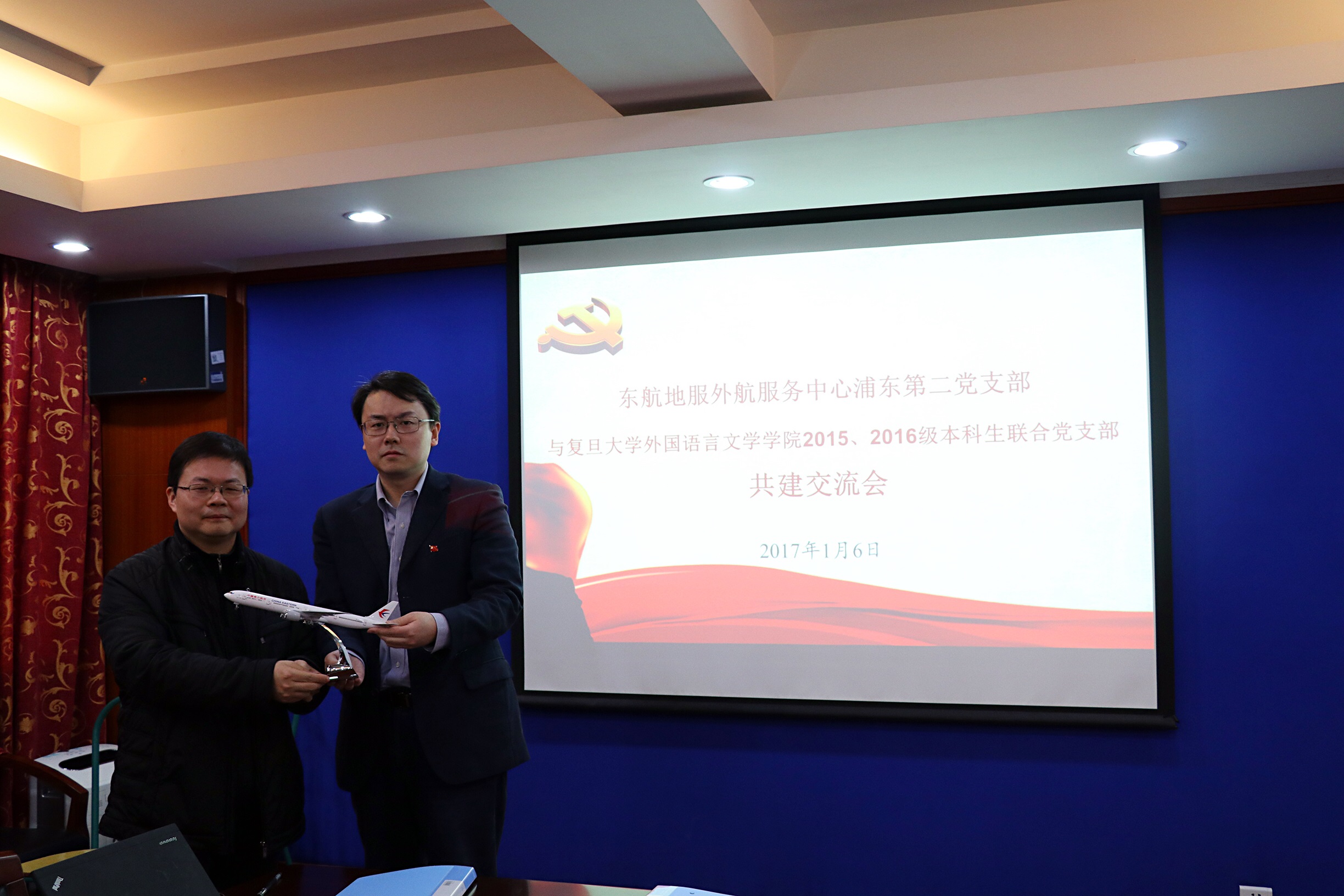为进一步贯彻落实十八届六中全会精神,深化“两学一做”教育实践活动,增强党员学习意识和服务意识。1月6日上午,东航地面服务部外航服务中心浦东第二党支部与外文学院2015级、2016级本科生联合党支部共建交流会暨共建签约仪式在平博在线注册,平博(中国)文科楼220会议室举行。东航地面服务部外航服务中心党总支书记骆伟,外航服务中心浦东第二党支部书记管玉蓉,外文学院党委副书记赵昕,学生党总支副书记郑阳、王亚鹏,以及双方党员代表参加活动。