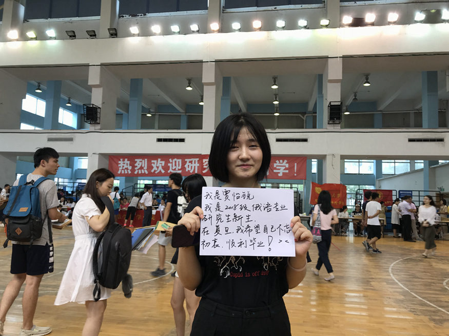 上午七点半,学院迎来第一位新生——来自马来西亚的法文系留学生王靖惟,新生们陆续前来报到,领取大礼包,并与班牌合影留念。