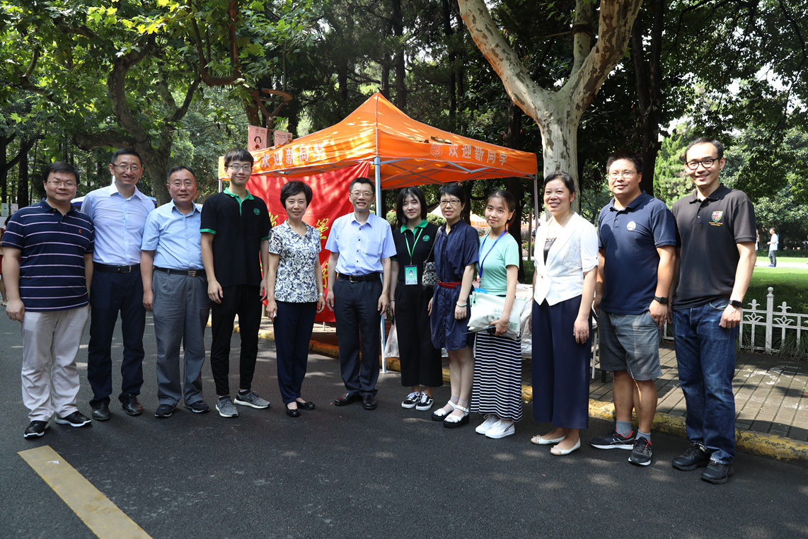 市教委领导、学校领导、书院领导和学院领导先后来到迎新摊位,看望新生和家长,慰问迎新工作人员。