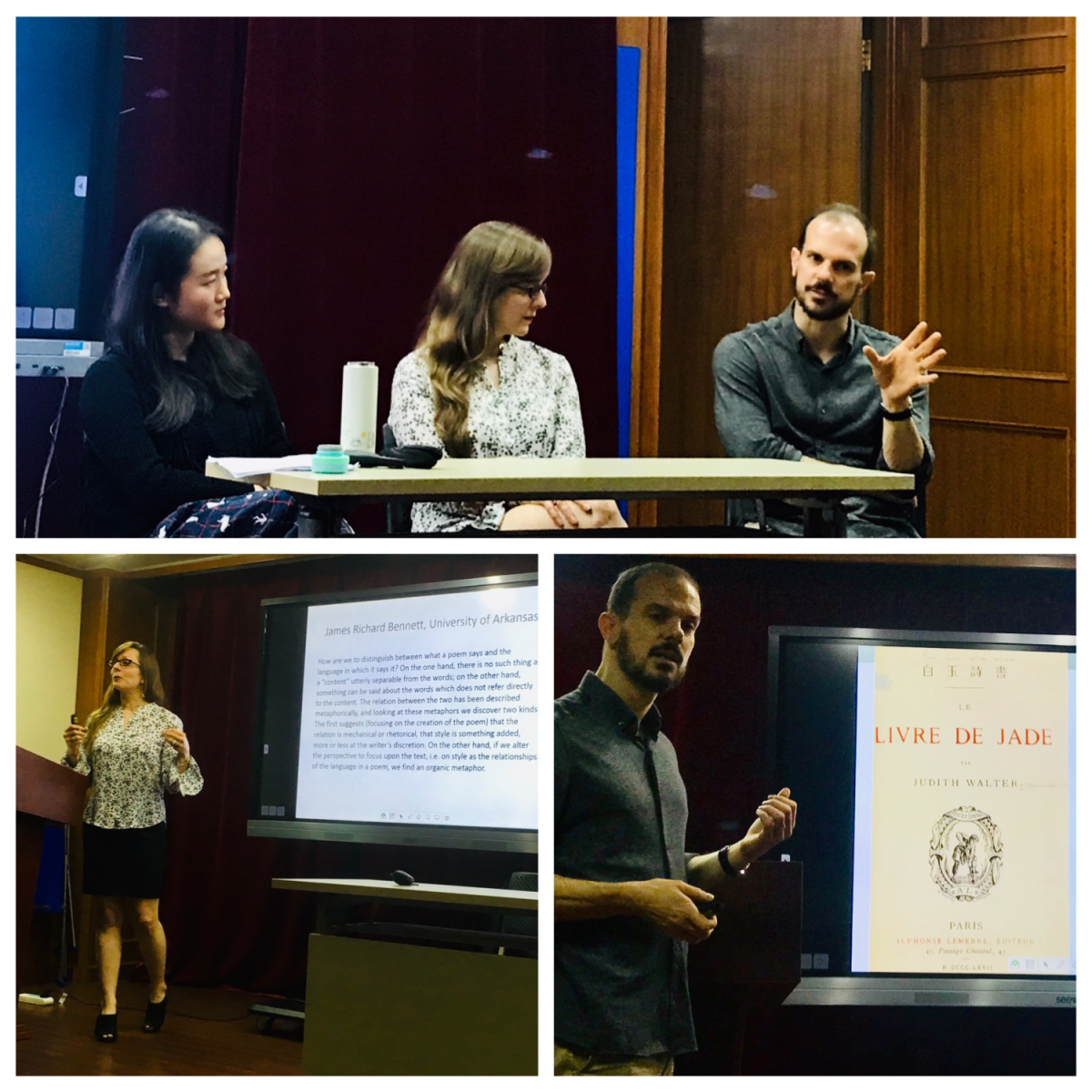 下午场的报告与讨论由向丁丁博士主持,围绕“不同空间中的写和译”这一主题展开。报告由精通中英双语的柯夏智(Lucas Klein)和顾爱玲(Eleanor Goodman)两位诗人和译者的主题演讲拉开序幕。他们结合个人翻译中国新诗的实际经验和情感体验,分别探讨了散文诗与汉语翻译的亲缘关系以及作为译者和作者不同身份转换之间的中心与边缘、内部与外部的关系问题。之后的向丁丁则是朗诵了自己创作的一则英文短篇《与酥米共度的一个夏天》,用自己的书写实践而非理论层面的建构,展现了人与动物的温情,以及其对这一概念在不同时空语境下所折射出的与会主题相关的思考。