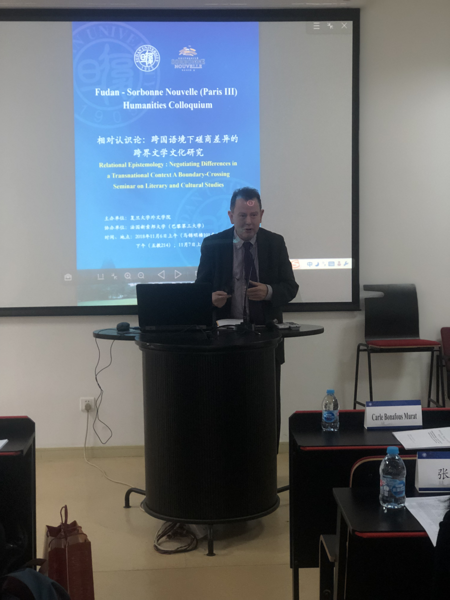 11月6号上午,巴黎三大的教授们在光华楼东辅楼接受了副校长陈志敏等领导的接待,双方表达了今后加强合作交流,共促教育发展的愿望。接着,一行人在马锦明楼参与了会议开幕仪式,巴黎三大校长兼爱尔兰文学教授Carle Bonafous Murat和复旦外文学院院长曲卫国教授做了开幕发言。卢丽安教授主持了会议。
