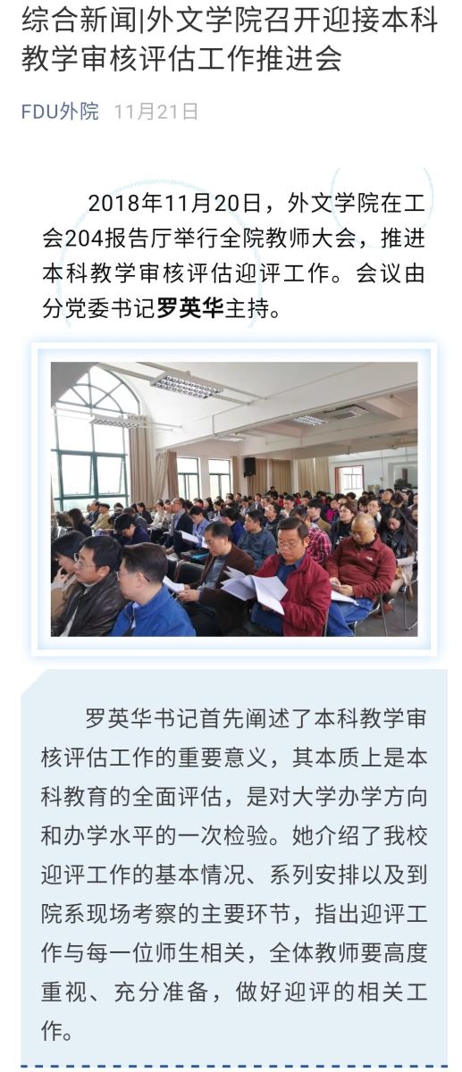 外文学院召开本科教学审核评估迎评工作动员会