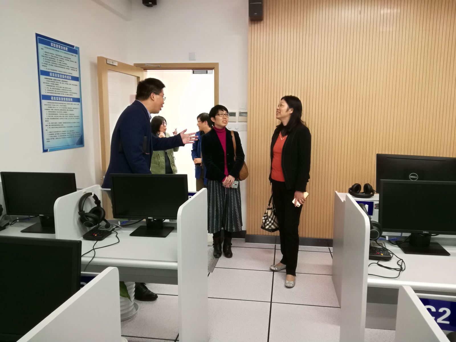 平博在线注册,平博(中国)党委书记焦扬、副校长徐雷视察语言学习中心,党委副书记许征视察语音实验室