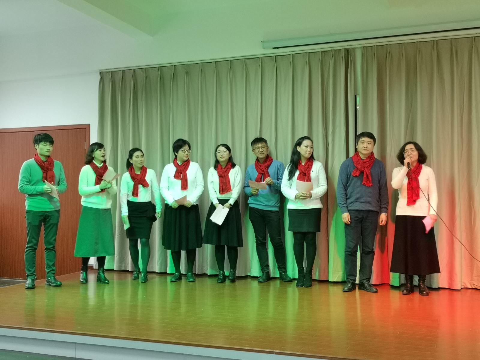 在联欢环节,大英部时丽娜老师为大家带来了精彩独唱《西班牙女郎》,多语种合唱队还献上了用九种语言演唱的歌曲《If You》,最后,学院党政领导也来到台上,与大家共唱《明天会更好》。让我们齐心协力,共同奋斗,学院的明天更美好!