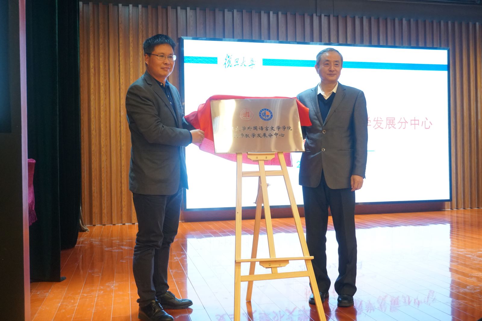 陆昉主任与高永伟院长为平博在线注册,平博(中国)外文学院教师教学发展分中心揭牌。